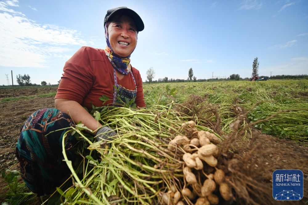 9月21日,在山東省滕州市東郭鎮(zhèn)夏莊村,農(nóng)民在收獲花生。