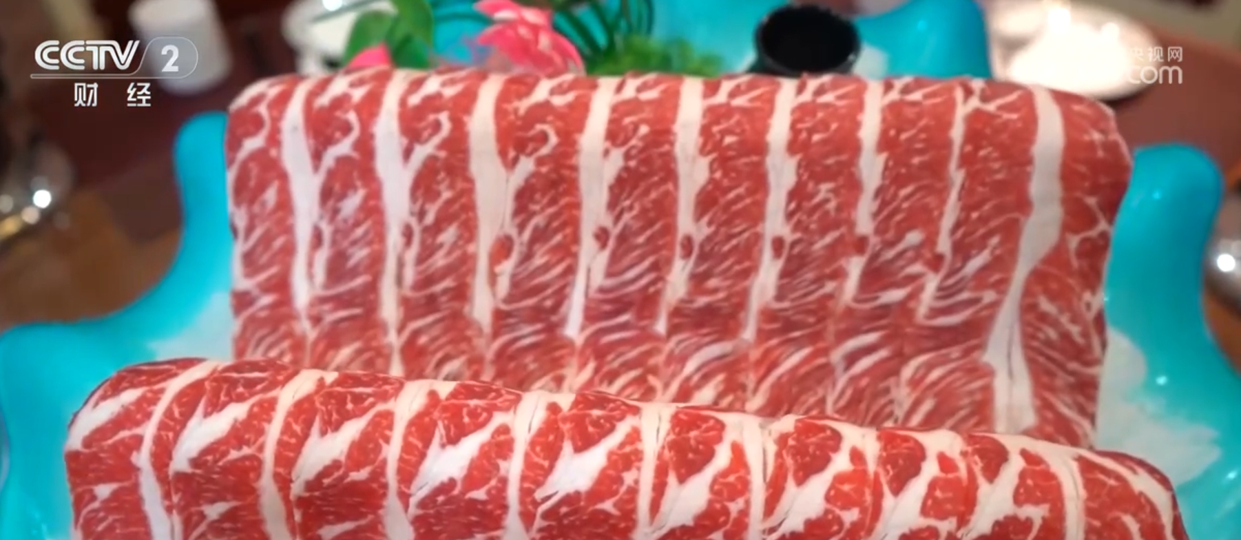 記者在山東濱州陽信縣一家肥牛火鍋店看到,眾多食客前來消費,生意火爆,負責人表示,近期牛肉菜品銷量同比增長了10%。