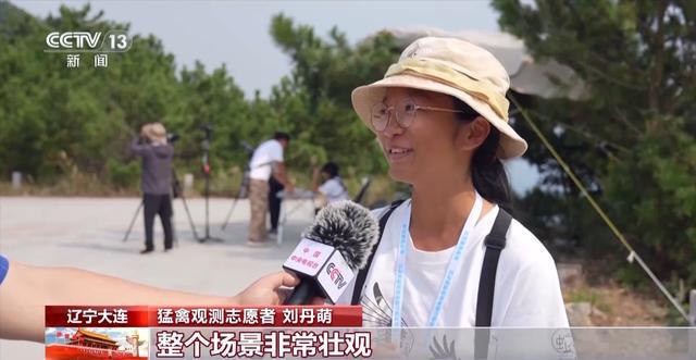 猛禽觀測(cè)志愿者 劉丹萌:“萬(wàn)猛日”當(dāng)天真的心情非常激動(dòng),整個(gè)場(chǎng)景非常壯觀,可以看到無(wú)數(shù)的小黑點(diǎn)從這個(gè)山頭開始冒起,像一條河一樣非常長(zhǎng),一直連到對(duì)面的山東煙臺(tái),這一整片天空全部都被猛禽占滿了,實(shí)在是太震撼、太壯觀了。
