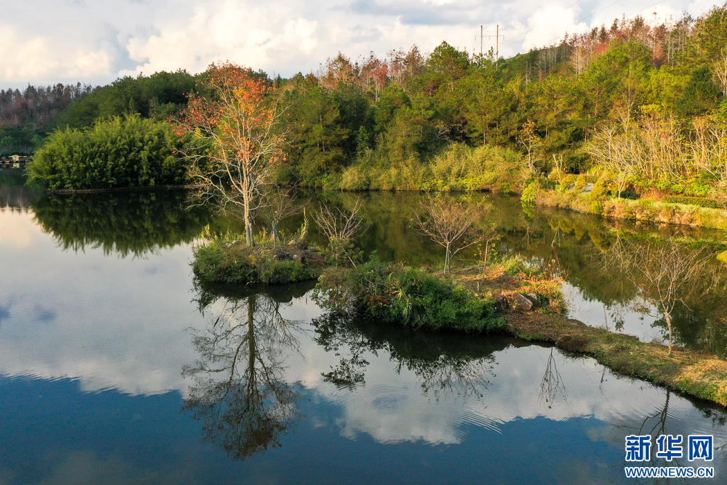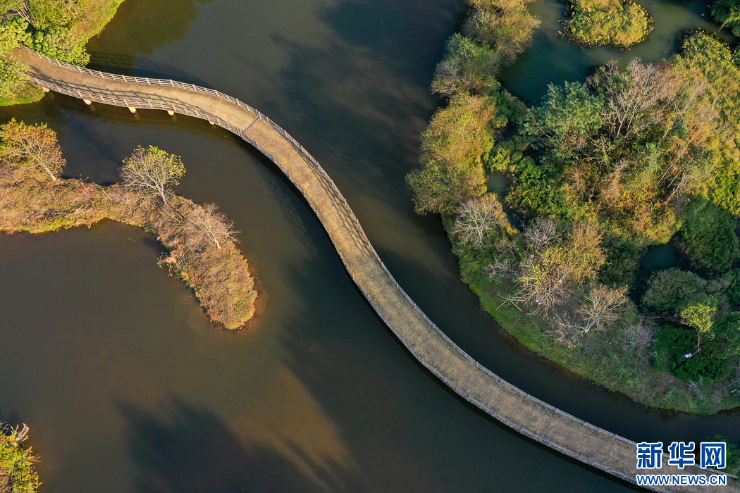 這是長(zhǎng)汀汀江國(guó)家濕地公園冬日景觀。如今這里是國(guó)家4A級(jí)旅游景區(qū)。經(jīng)過30多年的生態(tài)治理,昔日水土流失重災(zāi)區(qū)已成為風(fēng)光秀麗、林果連片的生態(tài)旅游勝地(無(wú)人機(jī)照片)。新華網(wǎng) 肖和勇 攝