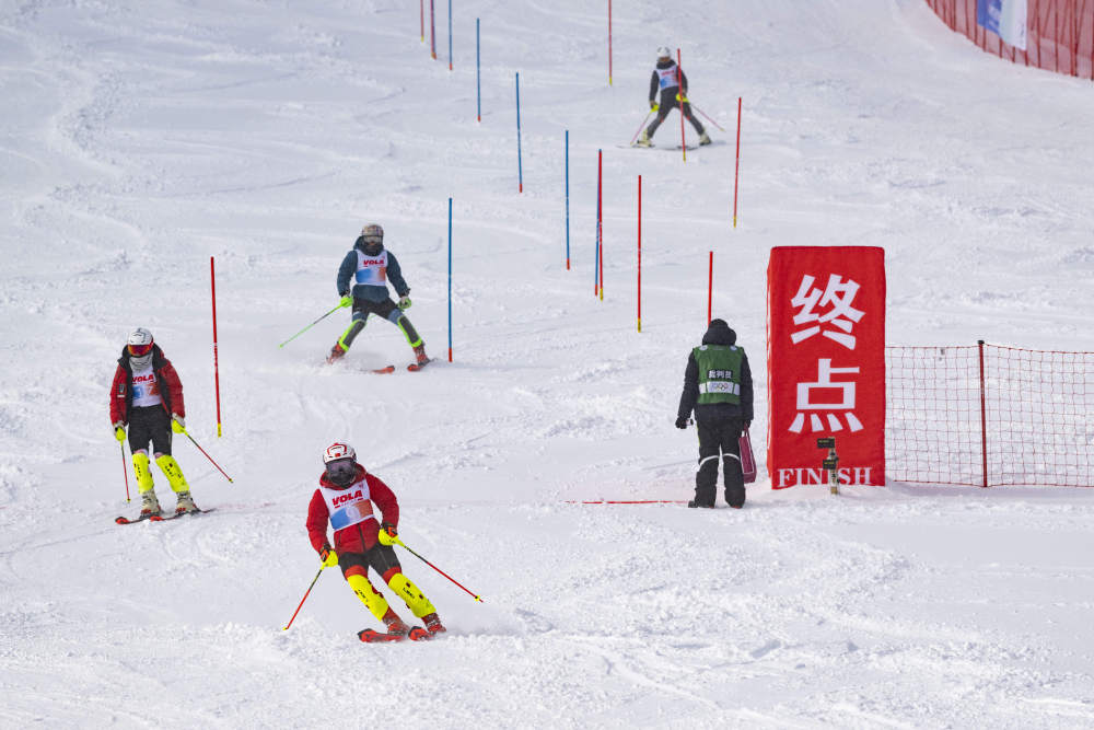 2024年12月22日,參賽選手在觀察男子回轉(zhuǎn)測試賽線路。當日,2025年哈爾濱亞洲冬季運動會高山滑雪項目測試賽在黑龍江省亞布力體育訓(xùn)練基地(亞布力滑雪場)舉行。
