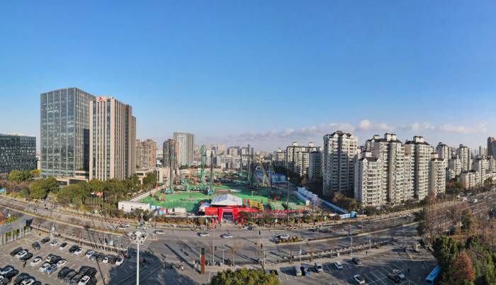 2025年1月9日,上海靜安區(qū)2025年第一批重大項(xiàng)目集中開工儀式在靈石社區(qū)(自儀廠地塊)項(xiàng)目現(xiàn)場(chǎng)舉行(無(wú)人機(jī)照片)。新華社記者 方喆 攝