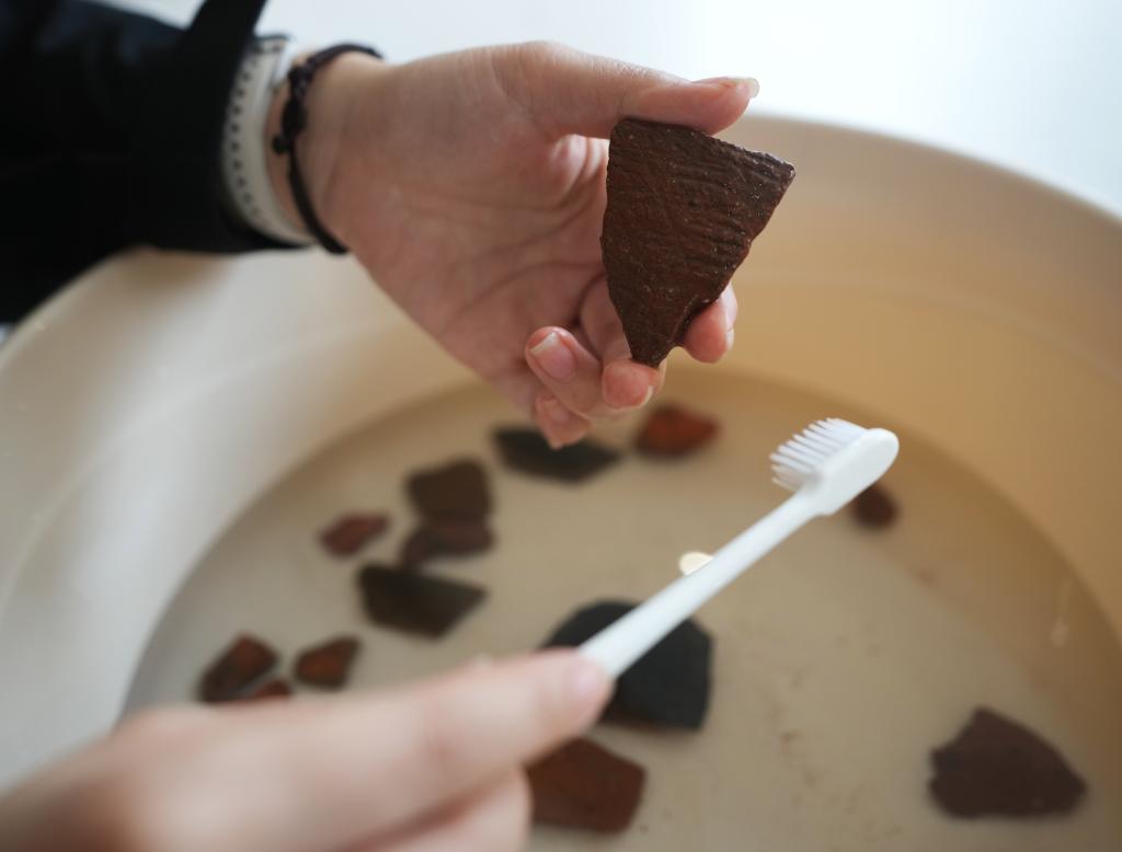 3月11日,在遼寧省朝陽市北票市的考古人員住所,考古人員在清洗調(diào)查現(xiàn)場發(fā)現(xiàn)的碎陶片。當日,來自遼寧省文物考古研究院的考古人員在遼寧省朝陽市雙塔區(qū)調(diào)查紅山文化遺址。此前,考古人員在遼寧省朝陽市凌源無白丁遺址群新發(fā)現(xiàn)多處紅山文化遺跡。新華社記者 李鋼 攝