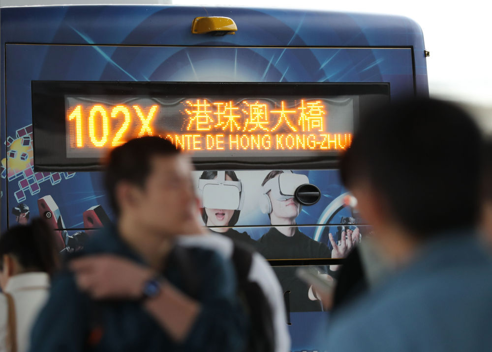 市民和旅客在橫琴口岸澳門(mén)口岸區(qū)排隊(duì),準(zhǔn)備登上前往港珠澳大橋方向的公交車(chē)。新華社記者 王益亮 攝
