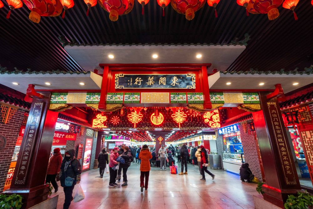 2025年1月22日,游客在沈陽(yáng)中街長(zhǎng)安寺胡同小吃街游玩。