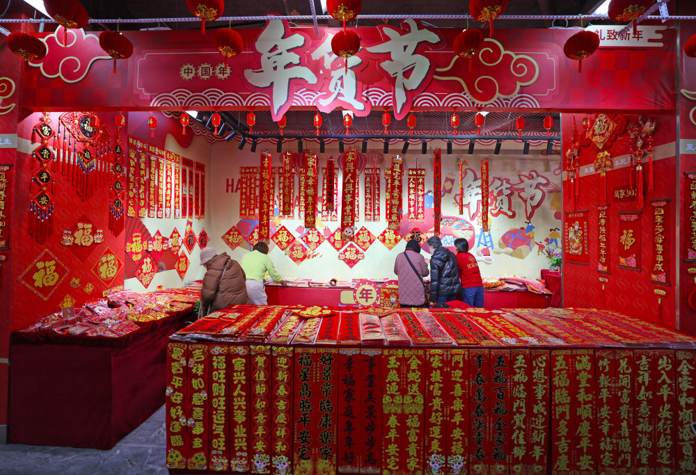 2025年1月22日,游客在沈陽(yáng)故宮非遺年貨市集游覽消費(fèi)。
