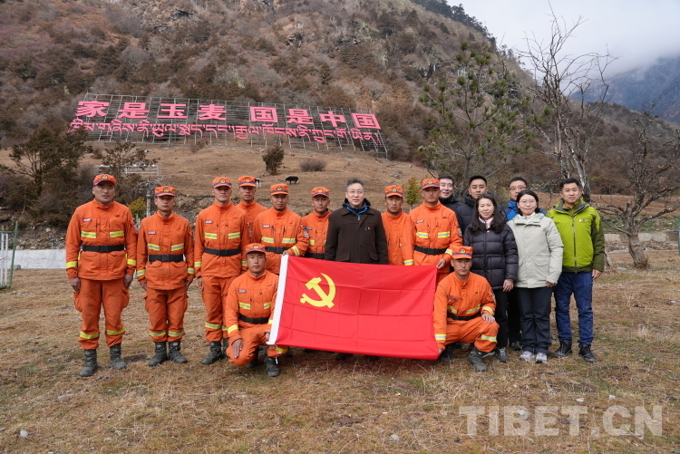 圖為中國西藏信息中心黨支部(現(xiàn)已成立中國西藏信息中心黨總支)與那曲森林消防大隊玉麥駐防分隊重溫入黨誓詞合影 攝影:陳浩力