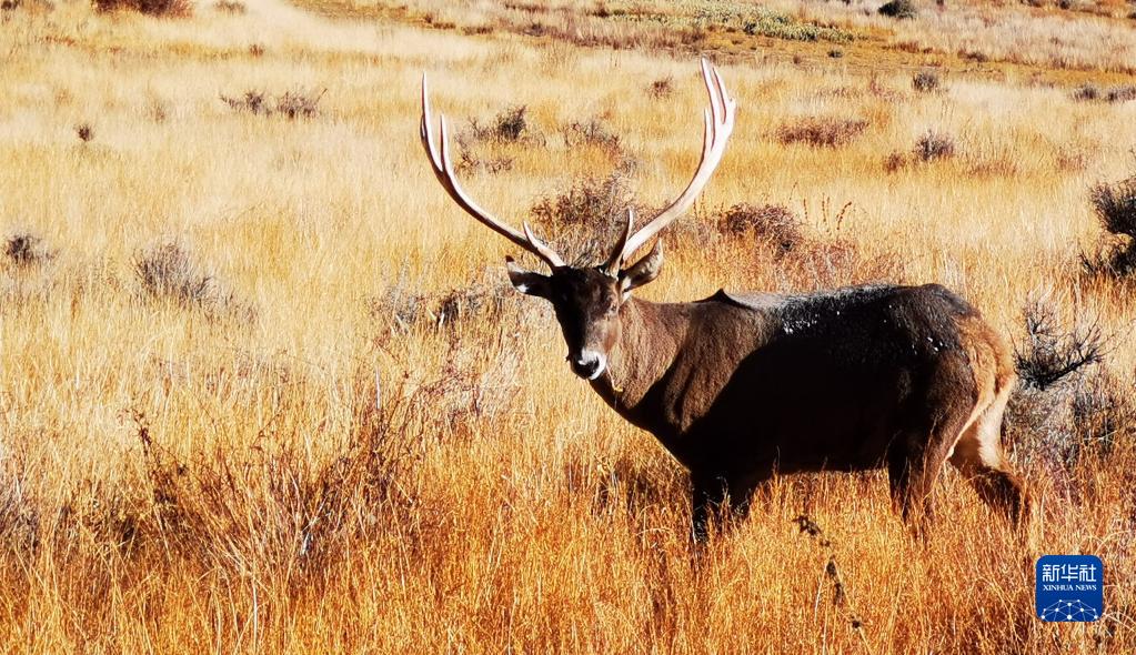 羊卓雍措附近的馬鹿(11月7日,手機(jī)拍攝)。新華社記者 沈虹冰 攝