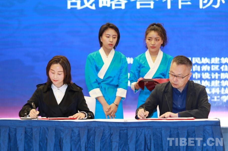 圖為拉薩市設(shè)計(jì)院與中國民族建筑研究會(huì)、西安建筑科技大學(xué)建筑學(xué)院簽訂戰(zhàn)略合作協(xié)議