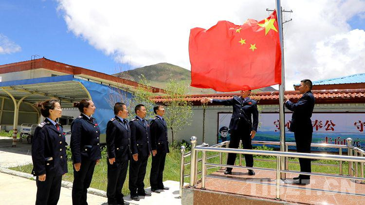 圖為錯(cuò)那縣稅務(wù)局升國(guó)旗儀式 攝影:張福東