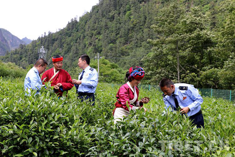 圖為錯(cuò)那縣稅務(wù)局干部與勒布溝茶農(nóng)一起勞動(dòng) 攝影:張福東
