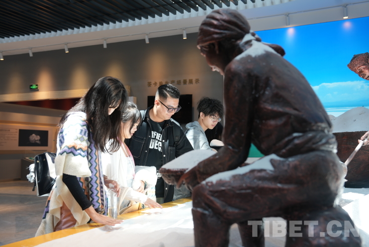 “茶卡”是藏語(yǔ),意即鹽池。鹽是我們生活中最為常見(jiàn)之物,但直到來(lái)到茶卡鹽湖文化館,這些青少年們才發(fā)現(xiàn)自己所知有限。他們這才了解到,鹽這一日常餐桌上的尋常之物,其背后竟藏著一個(gè)多彩而豐富的世界。除我們熟悉的海鹽、湖鹽之外,巖鹽的堅(jiān)硬、井鹽的深邃、竹鹽的清新,都以各異的姿態(tài)和色彩展現(xiàn)著自然界的奇妙多樣性。鹽的妙用也遠(yuǎn)不止調(diào)味,還有清潔、消腫等多種功效。何莉莉聯(lián)想到自己生物課上所學(xué):“鹽里含有的多種氨基酸和微量元素,都是我們身體所需,對(duì)人類(lèi)真的很重要。”