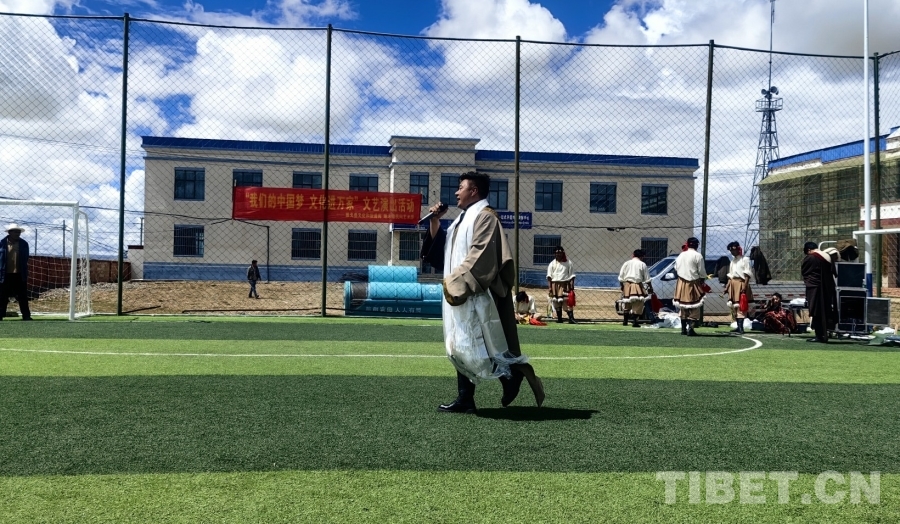 中國西藏網(wǎng)訊 9月5日,西藏自治區(qū)那曲市班戈縣文化和旅游局納木錯(cuò)民間藝術(shù)團(tuán)在班戈縣北拉鎮(zhèn),以“我們的中國夢 文化進(jìn)萬家”為主題,為廣大群眾送上一場充滿濃厚傳統(tǒng)文化,注滿深情厚誼的文藝惠民演出。