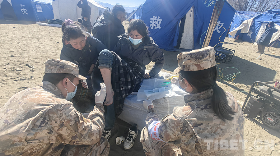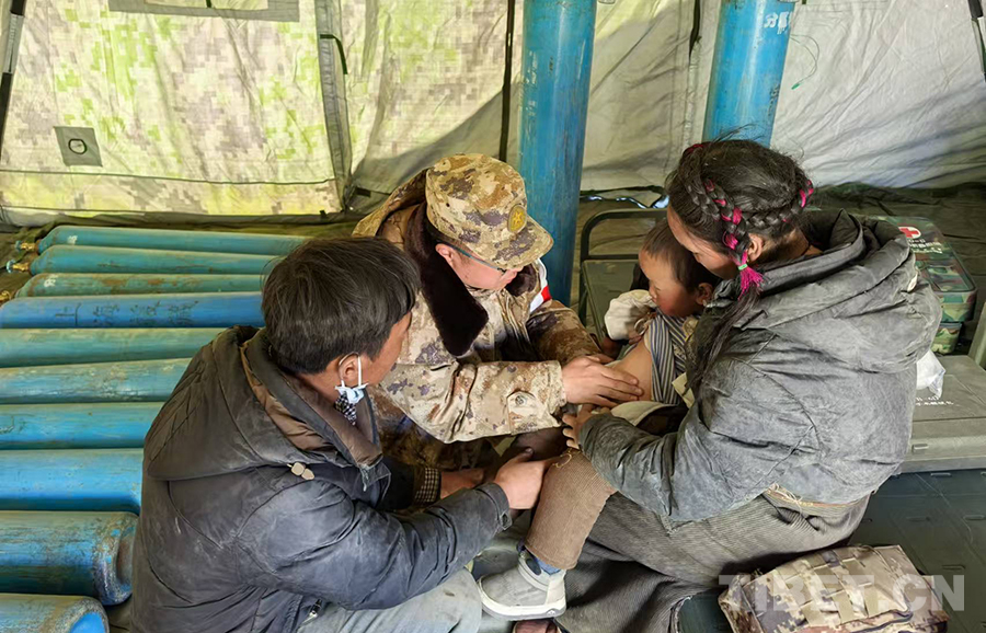 圖為西藏軍區(qū)總醫(yī)院救援隊伍在安置點進行巡診