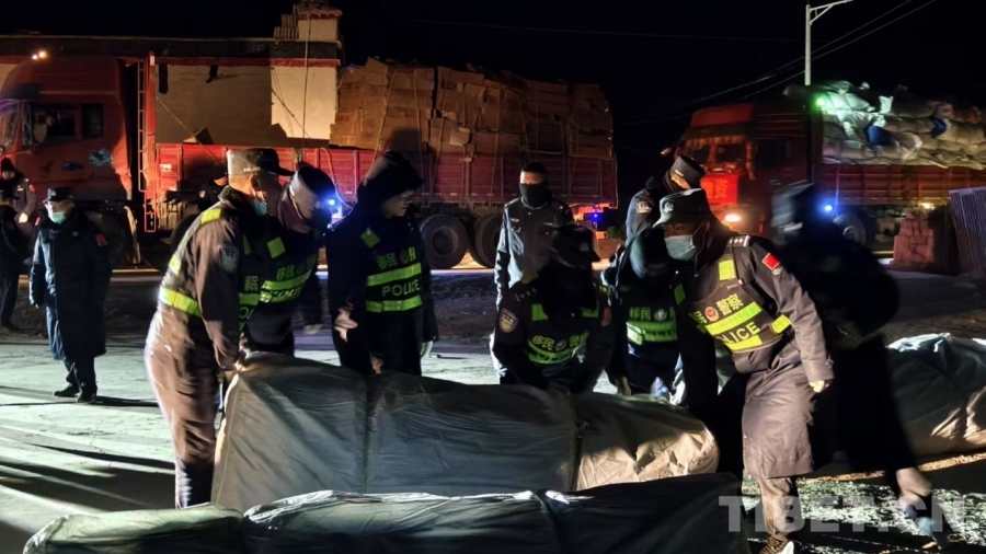 定日縣長所鄉(xiāng)雜村是此次地震受災最嚴重的區(qū)域之一,為了保證寒冷的天氣下群眾有避風休息處所,1月7日20時,參與救援的日喀則邊境管理支隊增援民警,等救災物資抵達后迅速展開帳篷搭建工作。