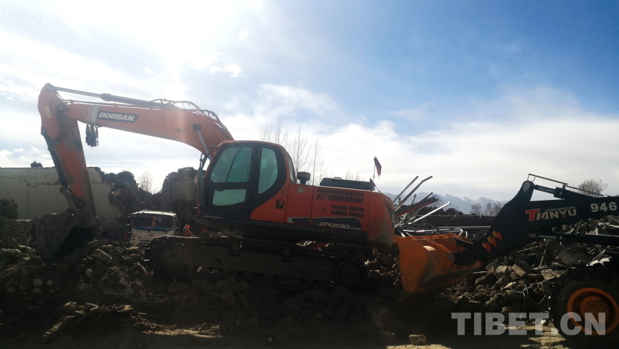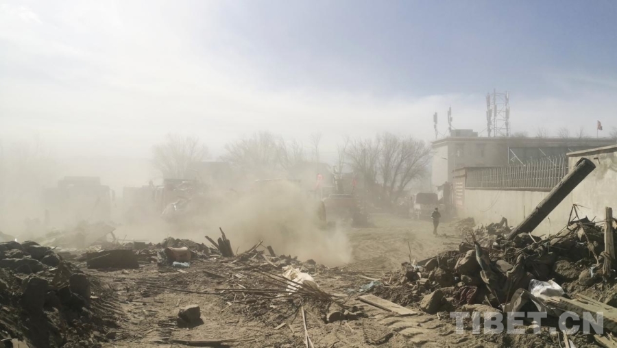 圖為地震重災(zāi)區(qū)西藏自治區(qū)日喀則市定日縣長(zhǎng)所鄉(xiāng)除險(xiǎn)現(xiàn)場(chǎng),畫面中右側(cè)的危房、建筑已完成除險(xiǎn) 攝影:劉莉