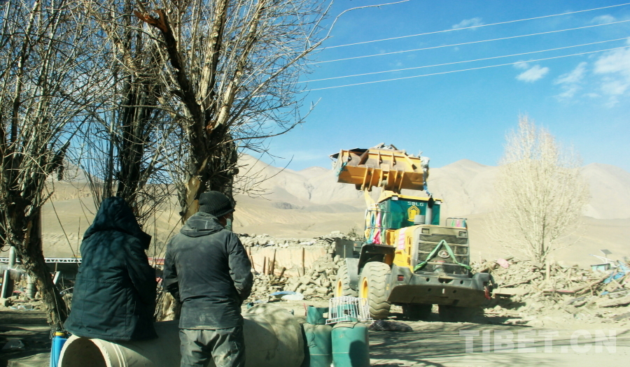 圖為地震重災(zāi)區(qū)西藏自治區(qū)日喀則市定日縣長(zhǎng)所鄉(xiāng)森嘎村危房除險(xiǎn)現(xiàn)場(chǎng),裝載機(jī)正在向渣土車傾倒建筑垃圾 攝影:劉莉