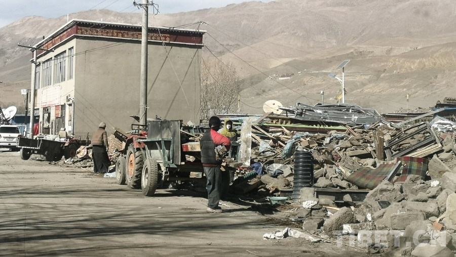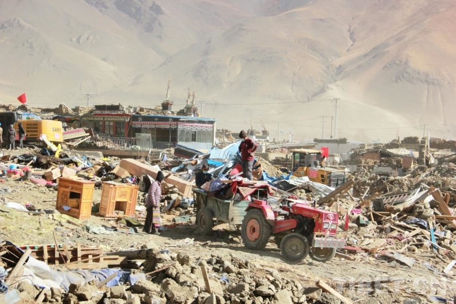 圖為地震重災(zāi)區(qū)西藏自治區(qū)日喀則市定日縣長(zhǎng)所鄉(xiāng)除險(xiǎn)現(xiàn)場(chǎng),村民在已完成除險(xiǎn)的地方搜集尚可再次利用的物資,旁邊未受到嚴(yán)重?fù)p壞的房屋被保留下來 攝影:劉莉