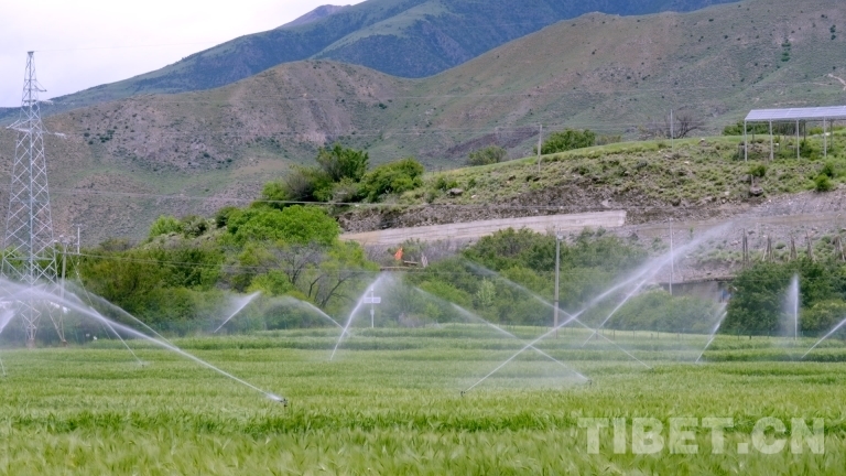 中國(guó)西藏網(wǎng)訊 在西藏自治區(qū)昌都市洛隆縣俄西鄉(xiāng)的5G+智慧農(nóng)業(yè)生產(chǎn)示范基地里,隨著負(fù)責(zé)人在按鈕上輕輕一點(diǎn),噴淋設(shè)備啟動(dòng),細(xì)密的水珠從噴頭均勻地噴淋出來(lái),讓地里的青稞苗顯得越發(fā)翠綠。