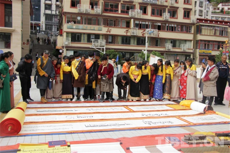 中國西藏網(wǎng)訊 9月25日,四川省甘孜藏族自治州得榮縣“喜迎建州70周年?首屆藏文書法展覽活動”開幕。書法愛好者、農(nóng)牧民群眾、中小學(xué)生、僧尼等近1000余人在書法長卷、古籍前駐足學(xué)習(xí)、拍照。