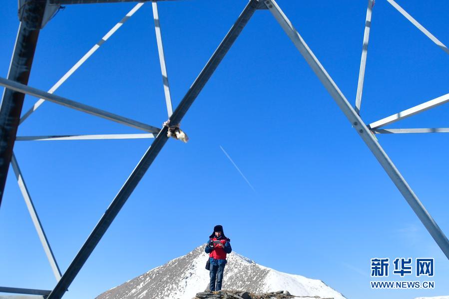 1月21日,國(guó)家電網(wǎng)西寧供電公司輸電運(yùn)檢中心運(yùn)檢人員在登山巡檢。新華社記者 張龍 攝