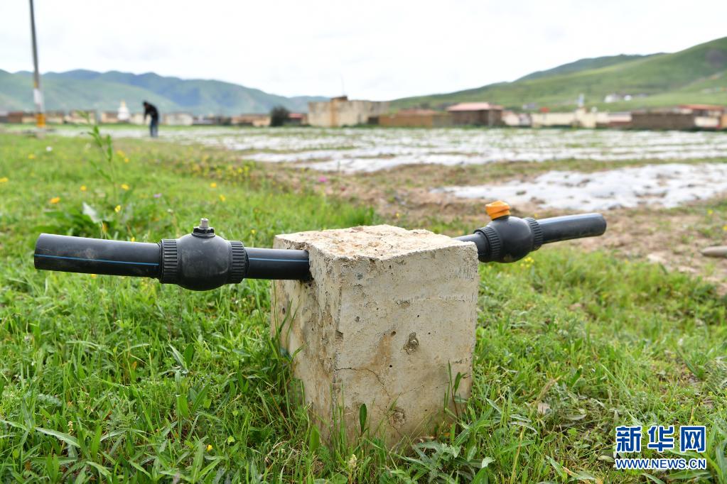 壤塘縣瑟谷村蔬菜基地內(nèi)的灌溉設施(7月17日攝)。新華社記者 李鑫 攝
