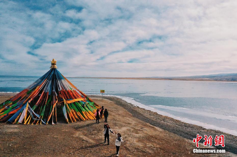 航拍游客打卡冰封季的青海湖。馬銘言 攝