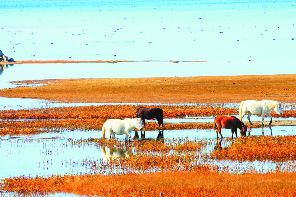 40余年來,海晏人用自己的智慧和汗水、忠誠和擔當、執(zhí)著和奉獻,在湟水源頭青海湖畔濃墨重彩地描繪了一道道綠色生態(tài)屏障,譜寫了一曲曲播撒綠色的燦爛樂章。如今你會看到這塊湖濱沙地已經(jīng)形成了一道獨特的沙漠景觀,成為和遠處蔚藍色的青海湖交相輝映的人造奇觀。