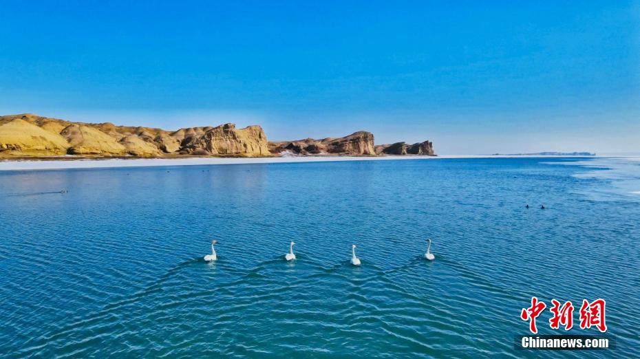 上百只天鵝飛抵柴達木盆地可魯克湖越冬
