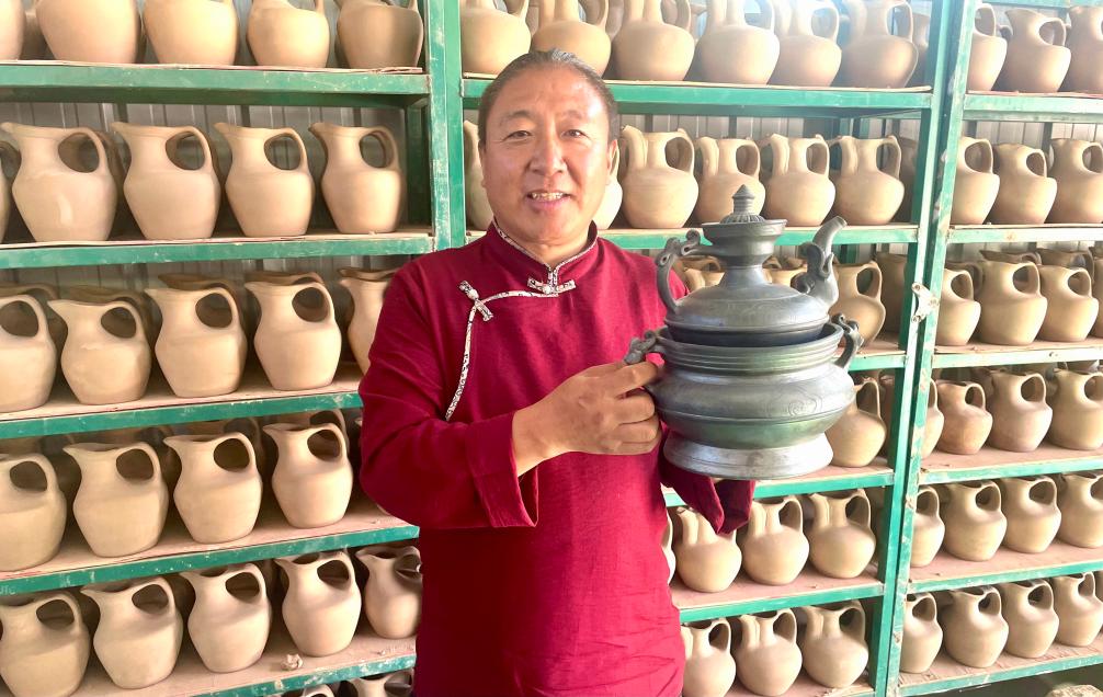 “從一位愛好手工藝品的牧民到行走各地的商人,在保護(hù)傳統(tǒng)文化中我們有了更多收入。是這個時代成就了我?!卑赚斎杭诱f。