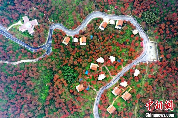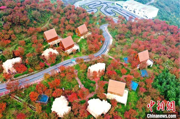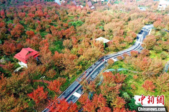 深秋時(shí)節(jié),位于四川阿壩州汶川縣漩口鎮(zhèn)趙公村的400余畝櫻花樹葉迎來最佳的觀賞期。放眼望去,五彩斑斕的櫻花樹葉紅遍山野,如同一幅秋日唯美畫卷。圖為滿山櫻花樹紅葉惹人醉。 伍排勇 攝