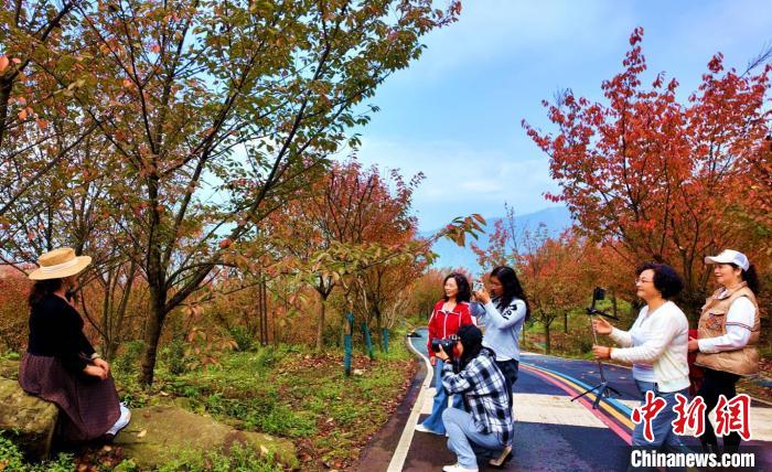 圖為游客在汶川縣漩口鎮(zhèn)趙公村賞紅葉。 伍排勇 攝