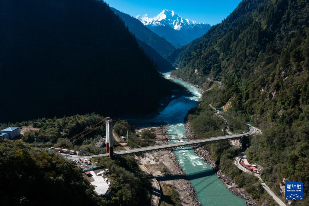 在西藏自治區(qū)林芝市波密縣拍攝的國道318公路通麥特大橋(11月8日攝,無人機照片)。新華社記者 沈伯韓 攝