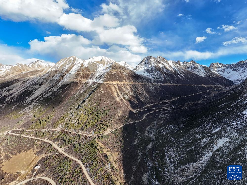 在四川省甘孜藏族自治州德格縣拍攝的國道317公路雀兒山段老路(11月1日攝,無人機照片)。新華社記者 王曦 攝
