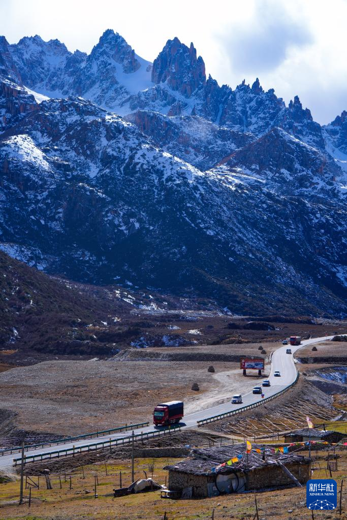 在四川省甘孜藏族自治州德格縣,車輛穿過雀兒山隧道后行駛在國道317公路上(11月1日攝)。新華社記者 沈伯韓 攝