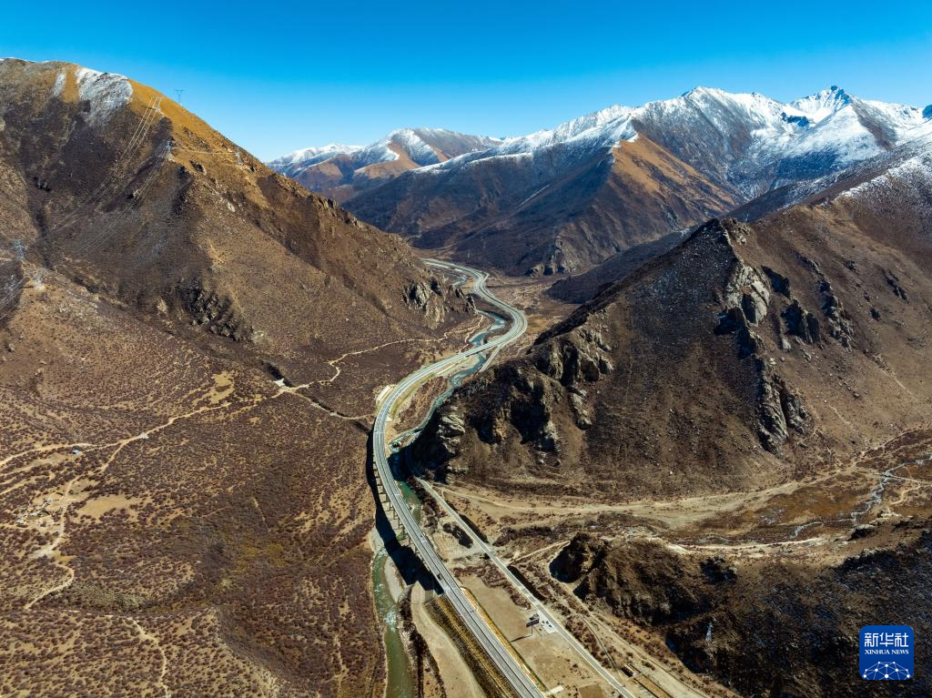 通往西藏自治區(qū)拉薩市的拉林高速(左)和國道318公路(11月9日攝,無人機照片)。新華社記者 沈伯韓 攝