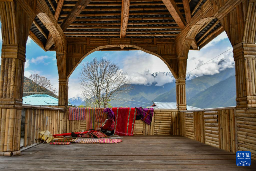 今年72歲的本央老人,是僜人服飾制作技藝西藏自治區(qū)級非遺傳承人。在西藏林芝市察隅縣沙瓊村,老人身著傳統(tǒng)的僜人服飾,在自家的涼亭里編織布料。