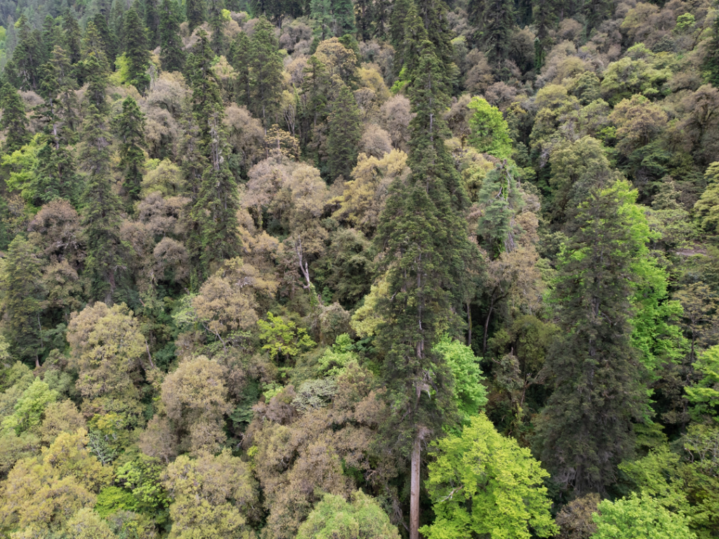 云南黃果冷杉原始森林,居中樹(shù)木高度為83.2米。(中科院植物研究所供圖)