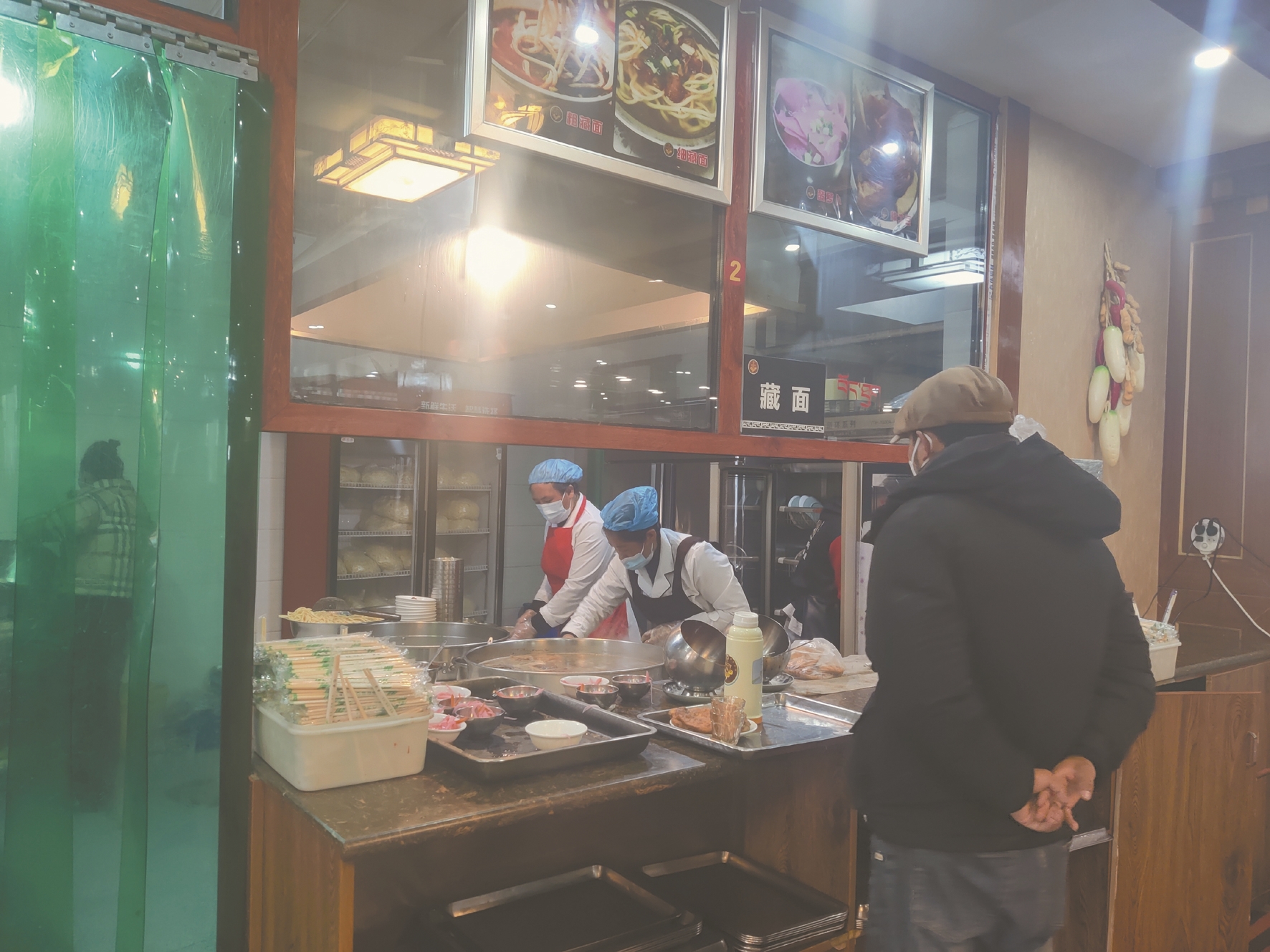 記者在桑曲茶館看到,店內(nèi)分為甜茶、藏面、蓋飯三個檔口,每個檔口由國定員工負(fù)責(zé),大家身著統(tǒng)一工作服,忙而不亂,有條不紊。各檔口均為透明玻璃窗,消費(fèi)者能夠直接看到餐飲食品加工制作全過程。