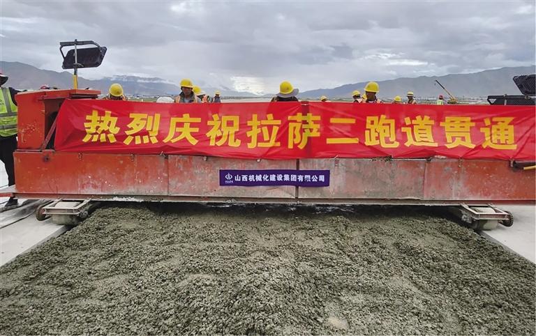近日,隨著施工現(xiàn)場(chǎng)攤鋪機(jī)轟鳴聲的戛然而止,拉薩貢嘎機(jī)場(chǎng)新建第二跑道最后一倉(cāng)混凝土完成澆筑,標(biāo)志著拉薩貢嘎機(jī)場(chǎng)新建第二跑道順利完成全線貫通。