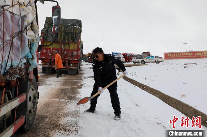 “現(xiàn)在唐古拉山路段處于不間斷堵車狀態(tài),昨天我們這一隊(duì)是從下午開始除雪保通,持續(xù)到今天凌晨4點(diǎn)左右才全部疏通?!?1日下午,中新網(wǎng)記者連線西藏安多縣公安局交通管理中心秩序中隊(duì)隊(duì)長達(dá)娃云旦,他介紹,10月17日以來,國道109線唐古拉山段持續(xù)降雪,積雪結(jié)冰,道路通行受阻。安多警方“以雪為令”全力救援被困乘客、車輛,進(jìn)行除雪保通。