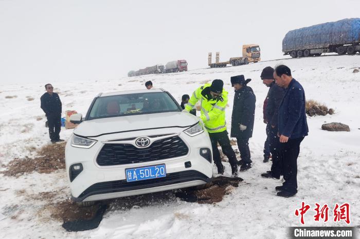 圖為西藏安多警方對被困唐古拉山埡口的車輛進(jìn)行施救。安多縣公安局 供圖