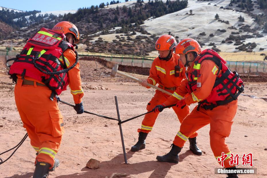 西藏芒康縣平均海拔4300多米,橫斷山脈由北向南縱貫縣境,因特殊地形導(dǎo)致山高谷深、川流密布,加之海拔較高,給各類救援帶來極大挑戰(zhàn)。此次訓(xùn)練模擬農(nóng)牧民在冰面上驅(qū)趕羊群時(shí)不慎踩破冰層掉入水中,要求救援人員快速營(yíng)救。