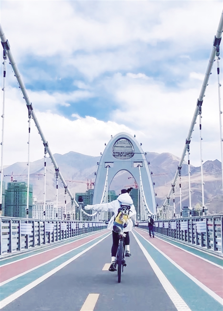 早上9時許,拉薩市區(qū)的街道一掃清晨的靜謐,各式各樣的車輛走走停停,在高峰期的馬路上緩緩行進。54歲的旦增克珠身著專業(yè)騎行服,在非機動車道上愜意飛馳。“現(xiàn)在天氣越來越舒服了,不論平常上班還是周末去宗角祿康公園跳舞,我都會選擇騎自行車出行。”