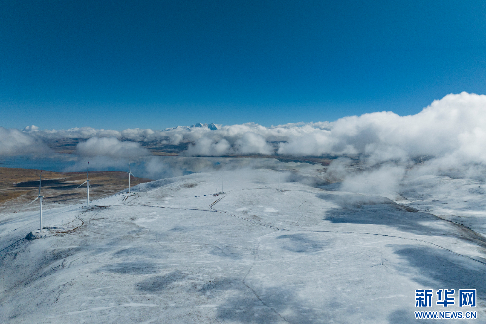 圖為西藏措美哲古風(fēng)電項目一處風(fēng)電機(jī)組(無人機(jī)照片)。新華網(wǎng) 旦增努布 攝