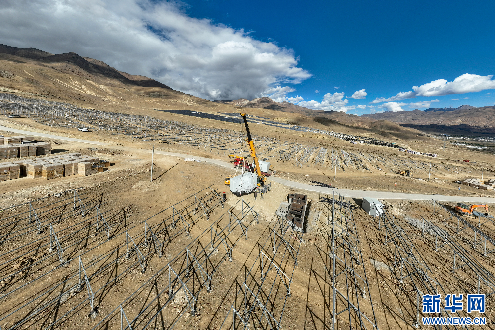 在建設(shè)中的110千伏協(xié)合措美縣20(MW)并網(wǎng)光伏電站項目(無人機(jī)照片)。新華網(wǎng) 旦增努布 攝