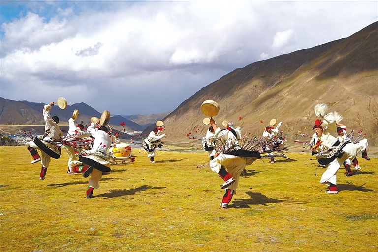 索縣“雪熱巴”傳統(tǒng)舞蹈屬鈴鼓舞,是融合說唱、諧(歌舞)、劇目于一體的民間綜合性傳統(tǒng)舞蹈。與西藏其他地方的熱巴舞不同,索縣“雪熱巴”的舞者只能是男子,這個習俗保留至今。其代表性劇目有《曲杰諾?!罚ㄖZ桑王子)等30多部,每個傳統(tǒng)劇目的跳法和姿態(tài)各不相同。數(shù)百年來,索縣“雪熱巴”在民間藝人的代代傳承中不斷發(fā)展,2013年,索縣“雪熱巴”被納入第四批自治區(qū)級非物質文化遺產名錄。