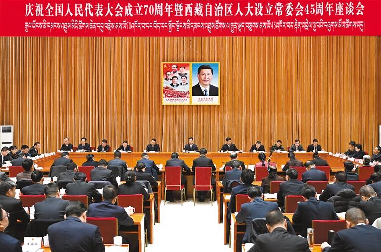 11月25日,西藏自治區(qū)召開慶祝全國(guó)人民代表大會(huì)成立70周年暨西藏自治區(qū)人大設(shè)立常委會(huì)45周年座談會(huì)。自治區(qū)黨委書記王君正出席并講話。 本報(bào)記者 李洲 攝