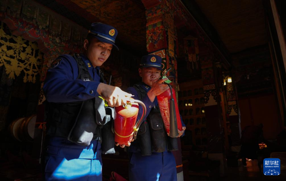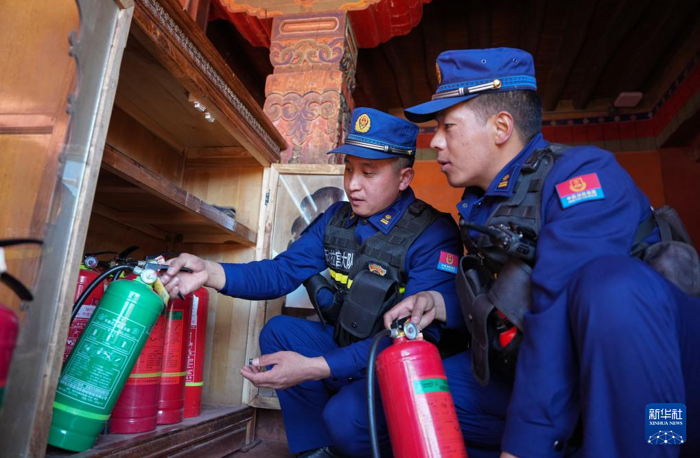 12月5日,布宮消防救援大隊(duì)隊(duì)員在例行檢查消防設(shè)備。新華社記者 晉美多吉 攝