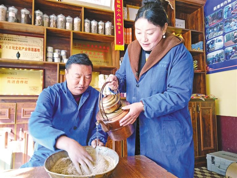 晨曦微露,拉薩市墨竹工卡縣門巴鄉(xiāng)仁多崗村籠罩在一片靜謐之中。此時,記者走進直孔熱色婦女藏藥香加工合作社,一股獨特的藏香氣息便撲面而來,裊裊娜娜地縈繞在空氣中,仿佛在訴說著這個地方制作藏香增收致富的故事。